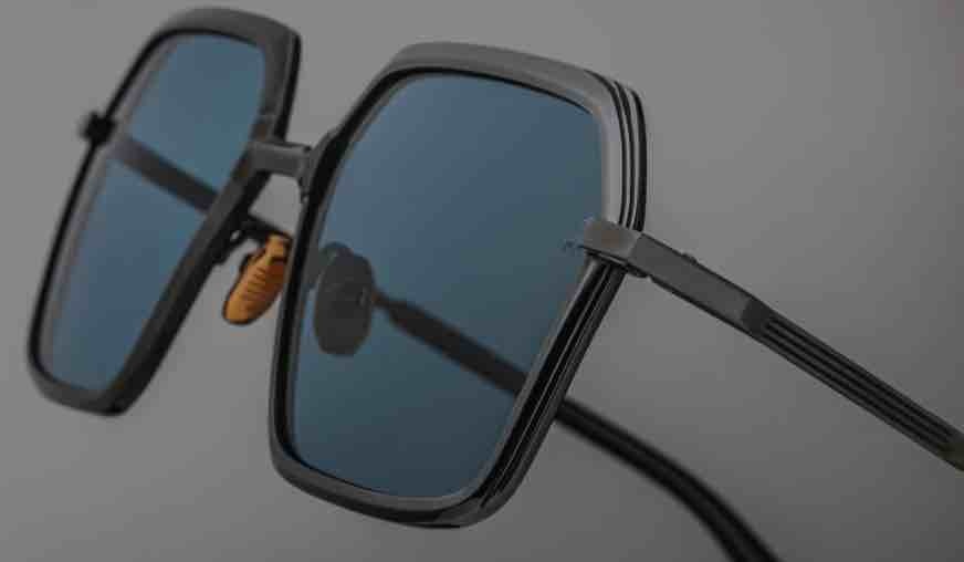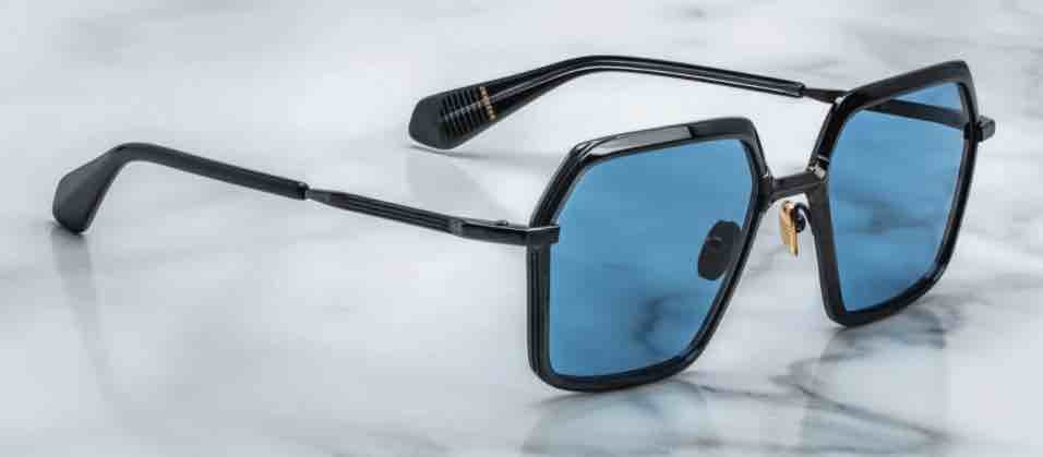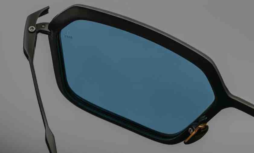• Black 100% beta titanium frame with blue cured cellulose acetate accents