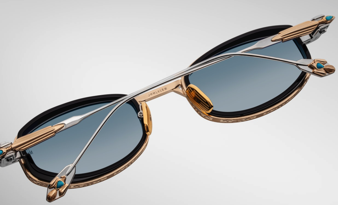- GOLD 100% BETA TITANIUM FRAME WITH HAVANA CURED CELLULOSE ACETATE AND GREEN GRADIENT LENSES